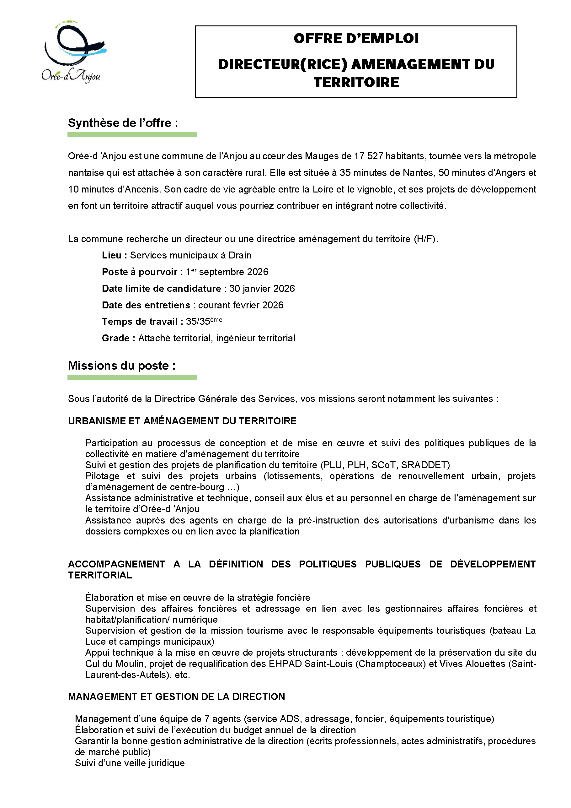 Directeur(rice) aménagement du territoire